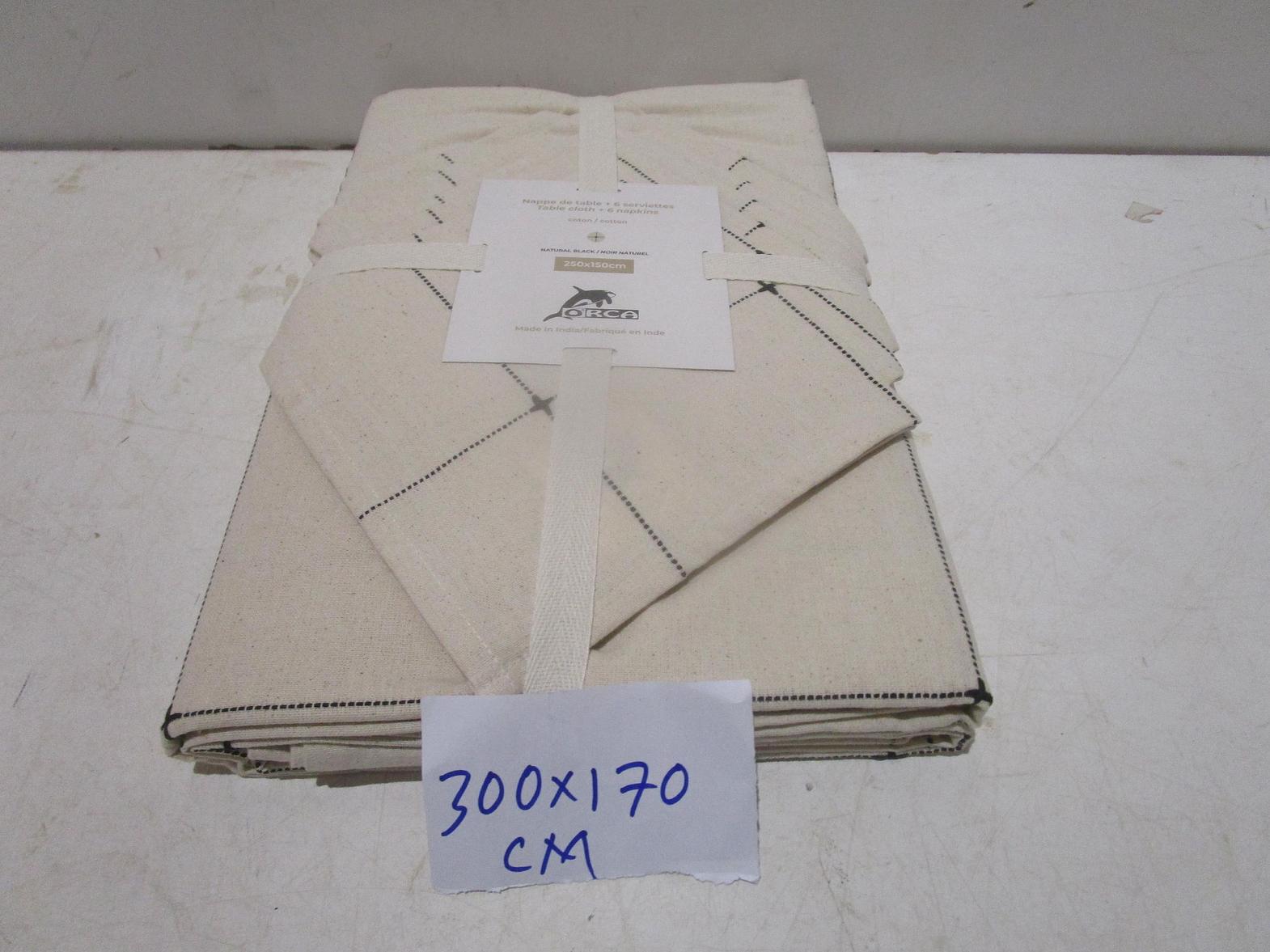 Table cloth 100% dyed cotton 200 gsm with embrodery black packing ribbon insert card + polybag #ref:tc-4871 300x170 +/1# 10ac#