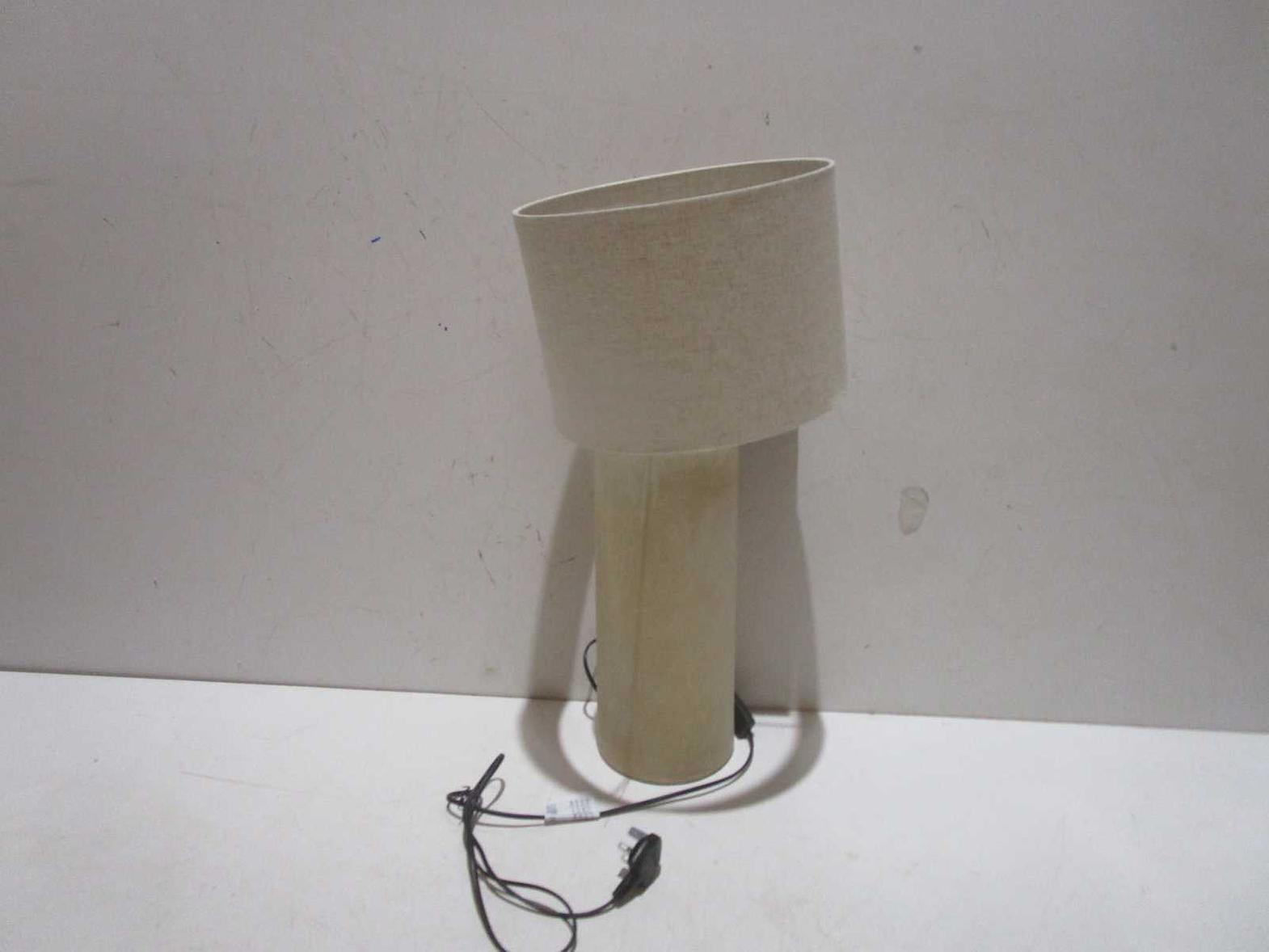 Table lamp e27 fiberglass+linen head metal frame inside brown box dark beige beige top d30x51 #ref:fx127320m# 1ac#