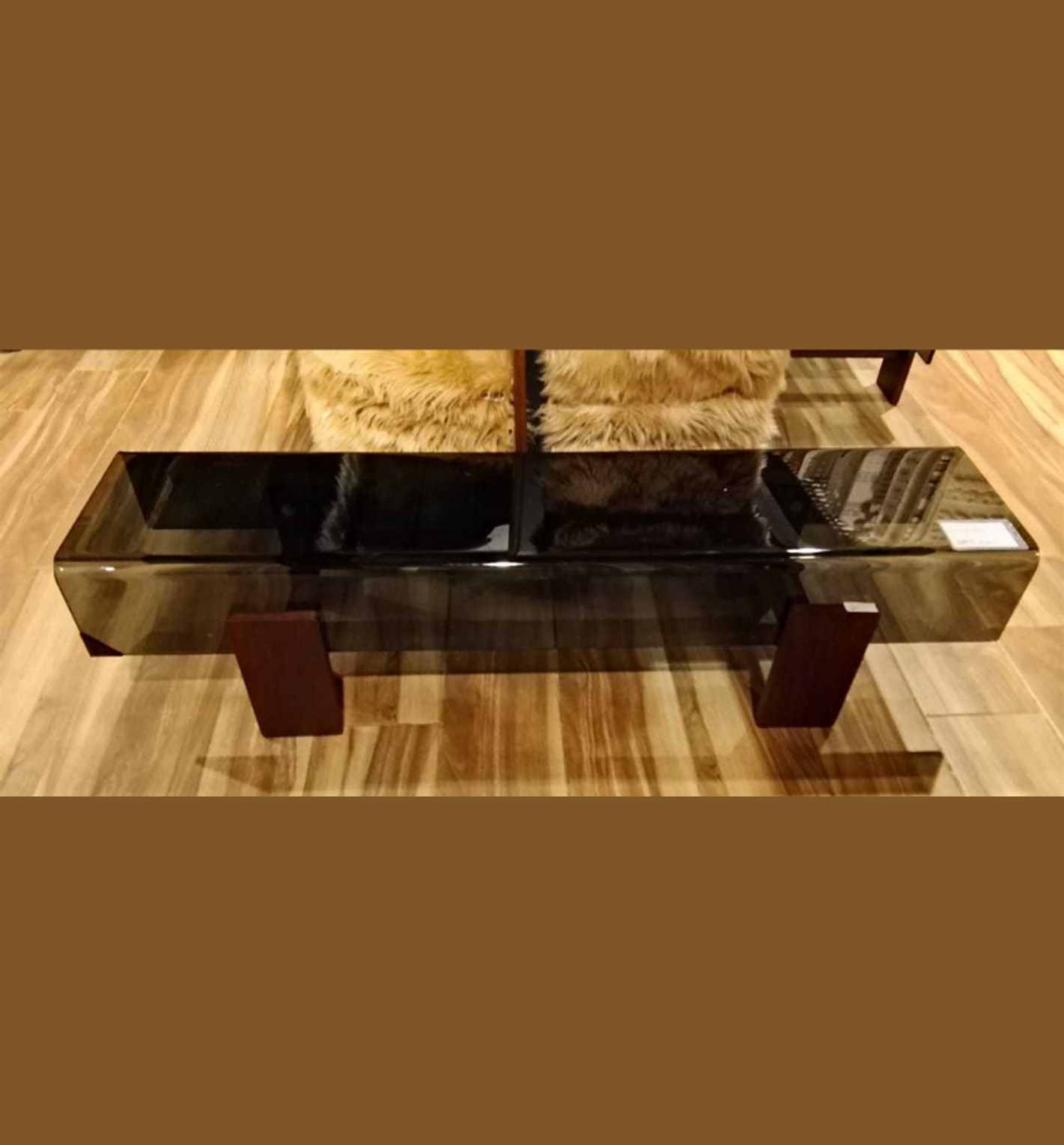 Tv cabinet 12mm glass, wood feet grey glass walnut leg