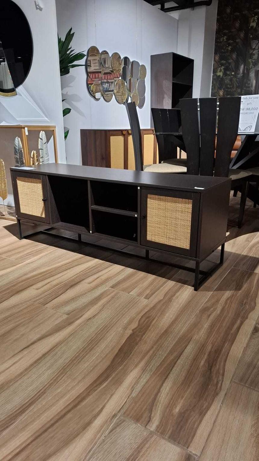 This refined media console brings together a bold black-wood finish with natural cane (canage) accents for a striking and textured appearance. With dimensions of 140 cm wide, 40 cm deep and 52 cm high, it provides ample surface area for your television and media components while maintaining a low profile suitable for modern living rooms. The black wood adds depth and contemporary edge, while the canage detailing introduces warm, tactile contrast and a subtle nod to natural material textures. Ideal for modern, Scandinavian or transitional interiors, this TV stand offers both functionality and elevated aesthetic